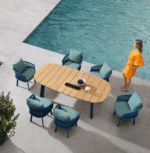 Обеденный стол Nola от HIGOLD — элегантное решение для стильного отдыха на открытом воздухе. Каркас из алюминия обеспечивает лёгкость и
