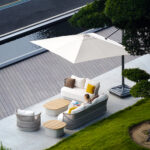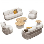 Коллекция AIO вдохновлена ландшафтами и атмосферой южной Италии — Средиземноморского побережья, яркого солнечного света, морского воздуха и натуральных природных текстур. Мебель AIO отличается плавными линиями и гармоничными пропорциями. Лёгкие алюминиевые каркасы подчёркивают современный характер коллекции, а декоративные элементы из верёвки добавляют изысканную текстуру и ощущение лёгкости. Тёплый натуральный тик завершает композицию, придавая мебели уют и благородство.