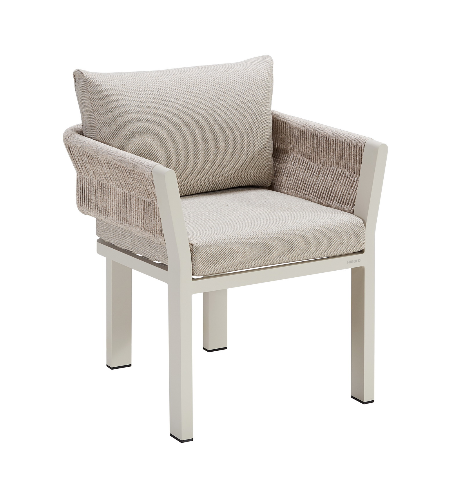 Коллекция Borromeo от HIGOLD, созданная дизайнером Клаудио Беллини, объединяет элегантность и комфорт. Прочная алюминиевая рама с порошковым покрытием обеспечивает устойчивость и долговечность, а мягкие сиденья из олефиновой ткани с наполнителем высокой плотности дарят особое удобство. Ручное плетение каната придаёт мебели лёгкость и уникальный характер, а столешница из тика добавляет теплоту и благородство.