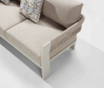 В её основе — лёгкая, но прочная алюминиевая рамка с порошковым покрытием, которая гарантирует надёжность и устойчивость к внешним условиям. Коллекция вдохновлена атмосферой Средиземноморья. Особую выразительность придаёт ручное плетение. Столешницы из цельного тикового дерева добавляют коллекции роскоши, экологичности и прочности. Обивка из ткани Acrylic устойчива к воздействию влаги и ультрафиолета — комфортная и практичная для уличного использования.