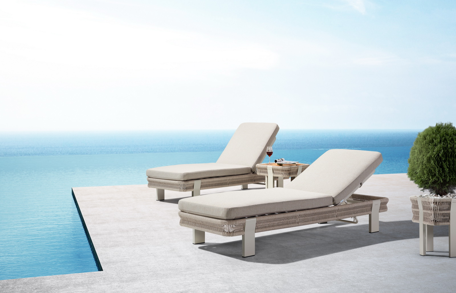 Коллекция Borromeo от Higold, созданная известным дизайнером Клаудио Беллини, — это воплощение роскоши и комфорта. Лежак и коктейльный столик идеально дополняют друг друга. Мягкая олефиновая ткань с пенопластом высокой плотности, толщиной 15 см, обволакивает вас комфортом, создавая ощущение уюта и тепла. Большая подушка для спинки лежака добавляет ещё больше мягкости и позволяет полностью расслабиться. Прочная алюминиевая рама с порошковым покрытием гарантирует долговечность и устойчивость конструкции. Уникальное плетение каната добавляет текстурную глубину и подчеркивает винтажный шарм коллекции.