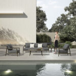 Каркас из прочного алюминия обеспечивает долговечность и устойчивость к коррозии, а качественная обивка и подушки надежно защищены от влаги и солнечных лучей. Благодаря эргономичной форме диван удобен для долгого отдыха, а его минималистичный внешний вид гармонично вписывается как в интерьер дома, так и в оформление террасы или сада. Уход за диваном не требует особых усилий, он надолго сохраняет безупречный вид и дарит уют в любом пространстве.
