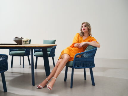 Представьте ужин на открытой террасе, где каждый элемент пространства дышит гармонией и стилем. Обеденный комплект Riva создан именно для таких