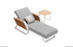 Изящный дизайн, вдохновлённый формой крыла, гармонично сочетается с премиальными материалами: прочным алюминиевым каркасом с порошковым покрытием, вставками из натурального тика и всепогодной тканью Sunbrella, устойчивой к влаге и ультрафиолету. Толстые подушки с наполнителем высокой плотности обеспечивают максимальный комфорт, а регулируемая спинка позволяет выбрать удобное положение для отдыха. Благодаря универсальному стилю шезлонг идеально впишется в сад, на террасу или к бассейну, подчеркивая изысканность и статус владельца.